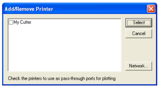 If you’ve installed a driver from your cutter’s manufacturer or followed the steps above, it will appear in this window and you can place a checkmark next to it as shown above. Place a checkmark next to the cutter you